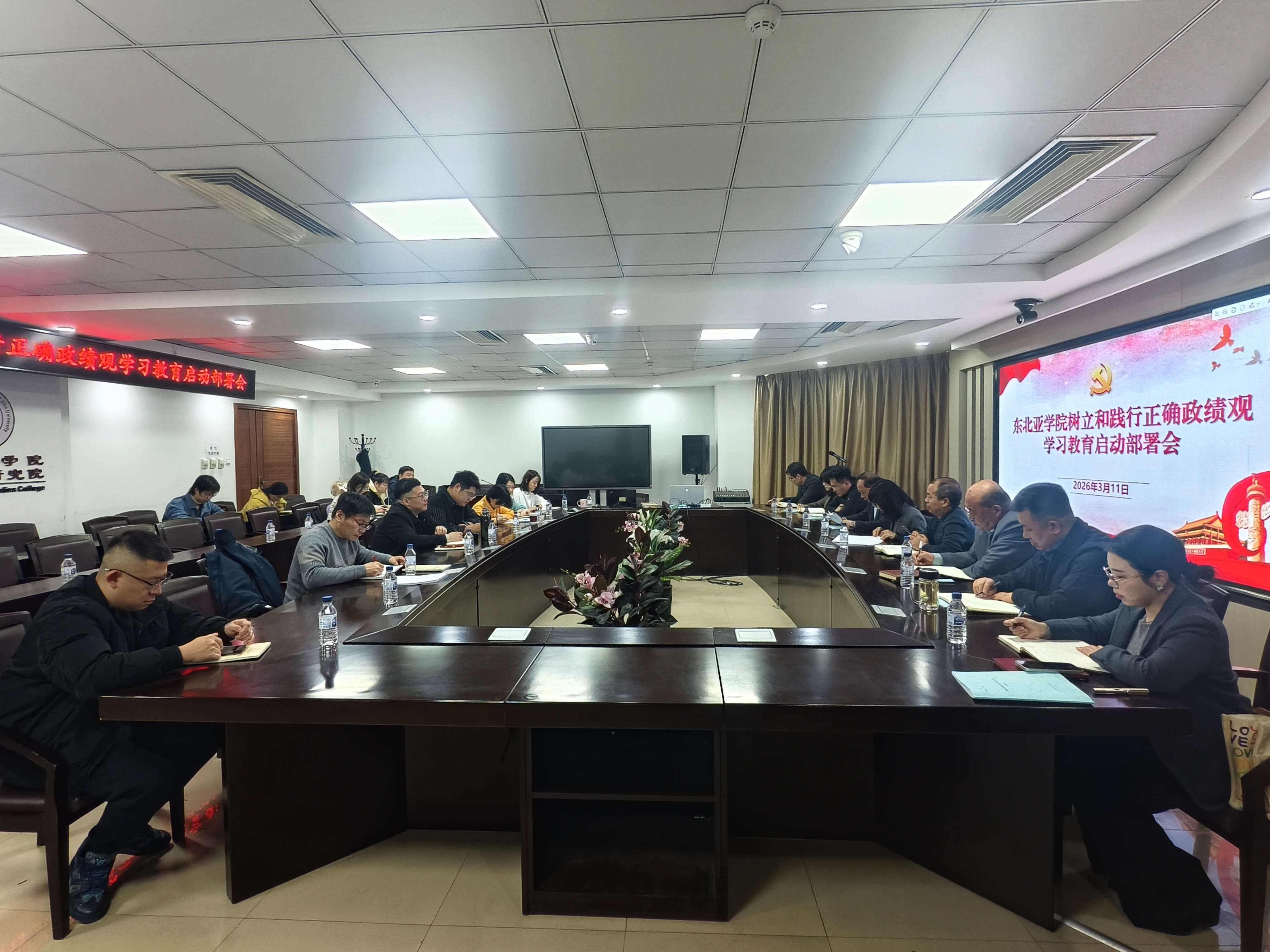 【校内办公网】3月11日,东北亚学院在东荣大厦404会议室召开党委(扩大)会议启动部署树立和践行正确政绩观学习教育。学院领导班子成员、党委委员、纪委委员、各党支部书记参加会议,学校党建工作联络员冉军列席会议。会议由学院党委书记赵毅博主持。