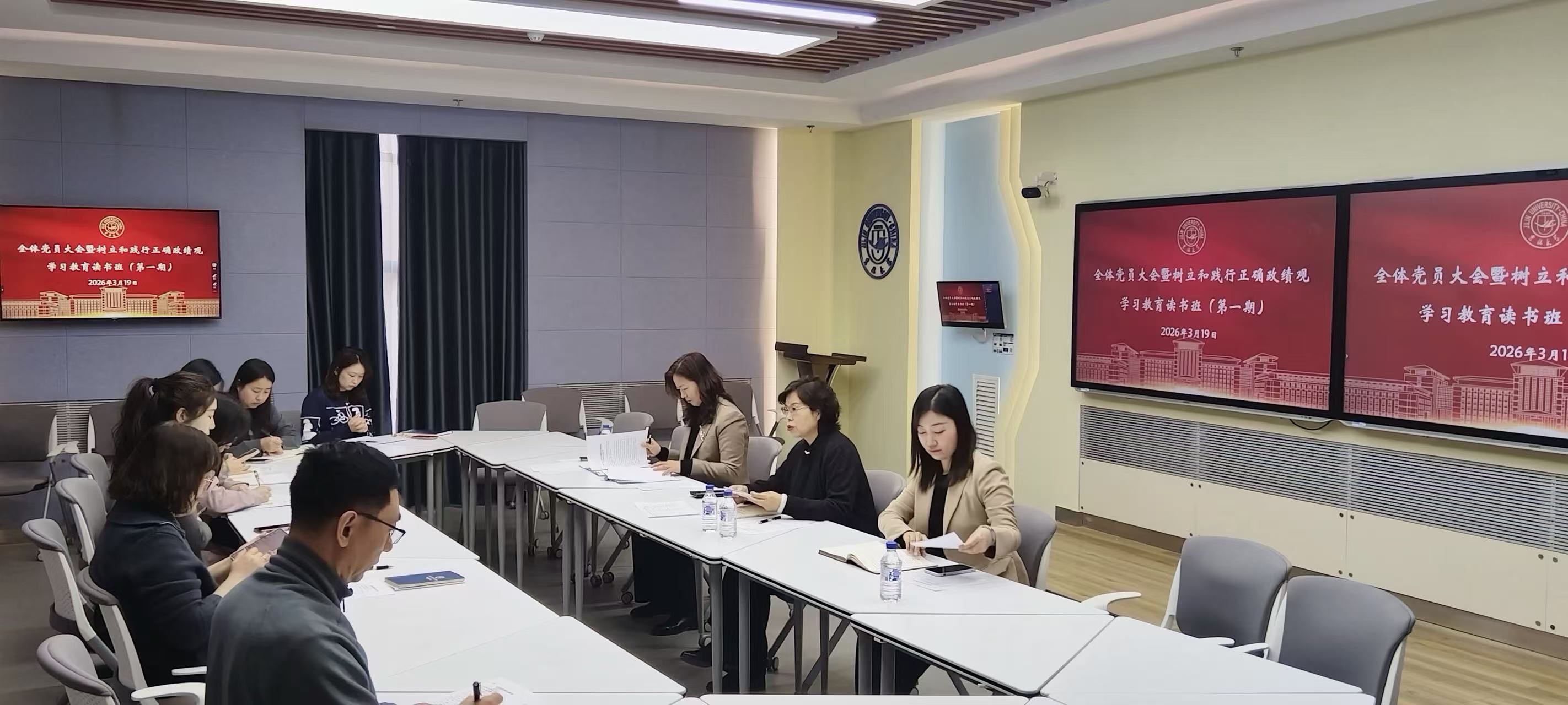 【校内办公网】为深入学习习近平总书记关于树立和践行正确政绩观的重要论述,3月19日上午,教师教学发展中心教工党支部召开全体党员大会暨树立和践行正确政绩观学习教育读书班(第一期),开展专题学习,全体党员参加会议。