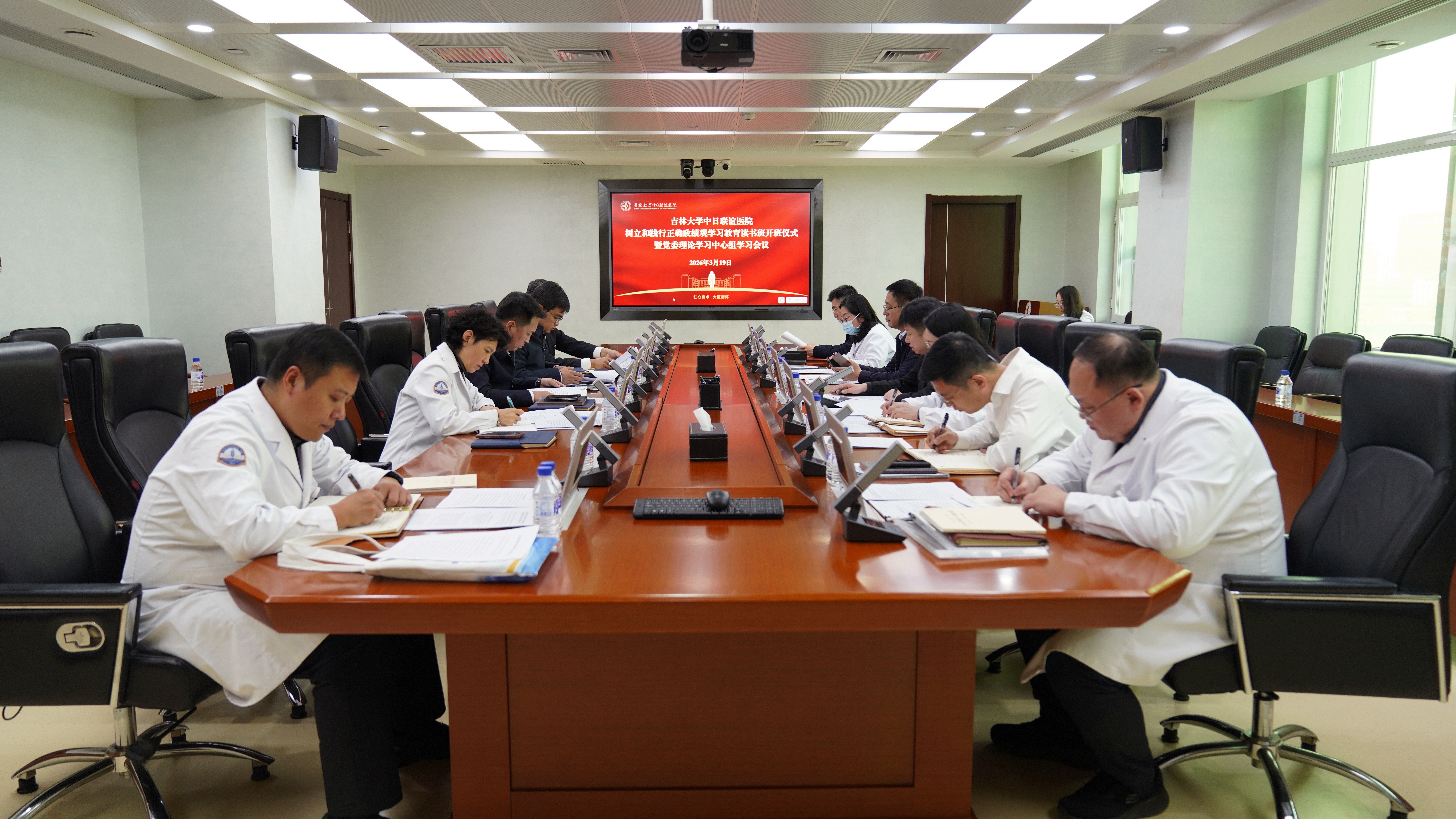 【校内办公网】3月19日,吉林大学中日联谊医院召开树立和践行正确政绩观学习教育读书班开班仪式暨党委理论学习中心组学习会议。以理论学习深化思想认识,筑牢践行正确政绩观的思想根基。吉林大学党建联络员金祥雷,我院党委书记杜建时、院长刘林林等院领导班子成员、院党委理论学习中心组成员、院党委委员参会。会议由杜建时主持。