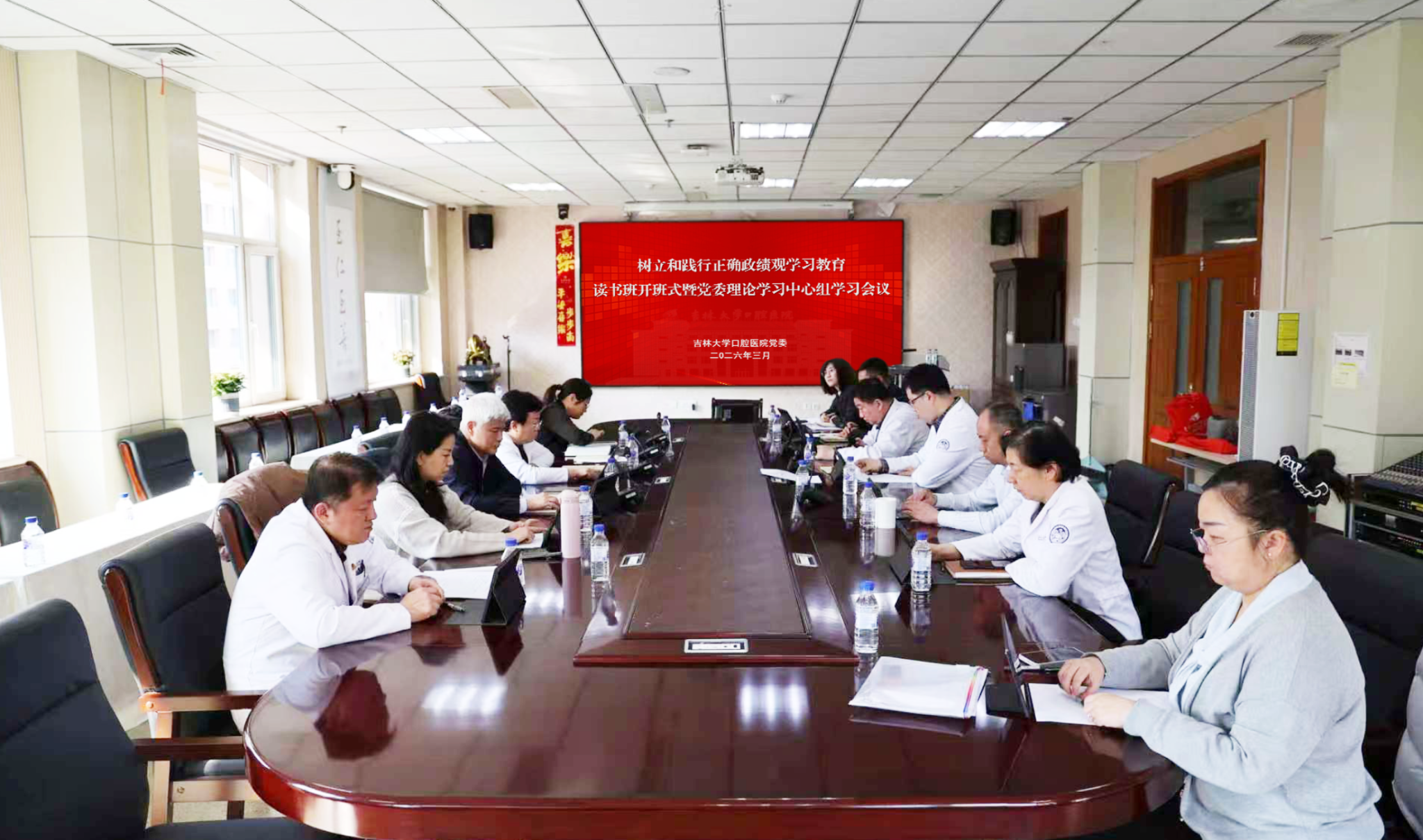 【校内办公网】3月19日,口腔医院举行树立和践行正确政绩观学习教育读书班开班式暨党委理论学习中心组学习会议。吉林大学党建工作联络员屈英和同志列席指导会议。院党委理论学习中心组全体成员参会。会议由党委书记胡敏主持。