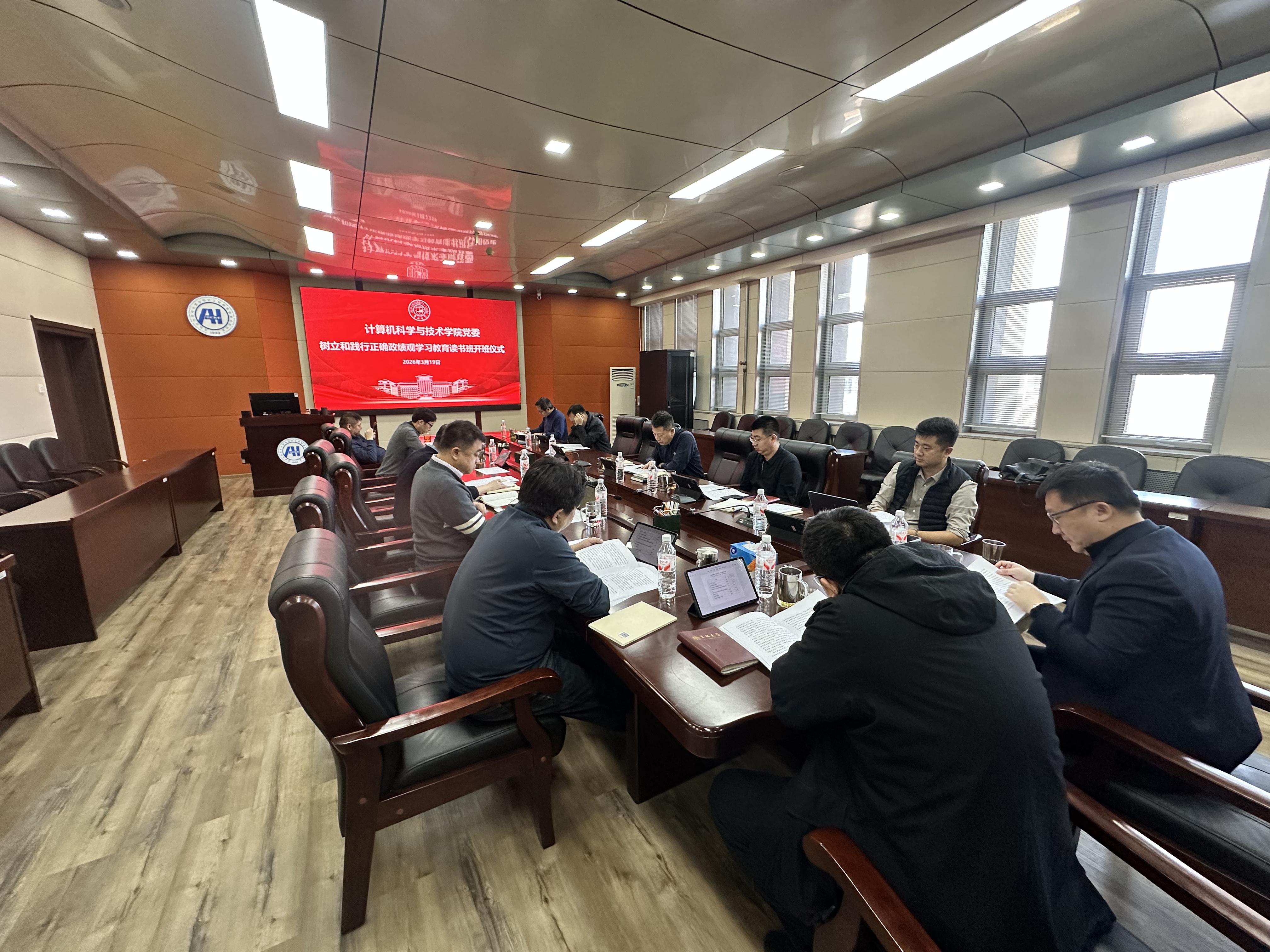 【校内办公网】3月19日上午,计算机科学与技术学院党委树立和践行正确政绩观学习教育读书班开班仪式在王湘浩楼A515会议室举行,学院领导班子全体成员参加会议。会议由党委书记宫皓宇主持。